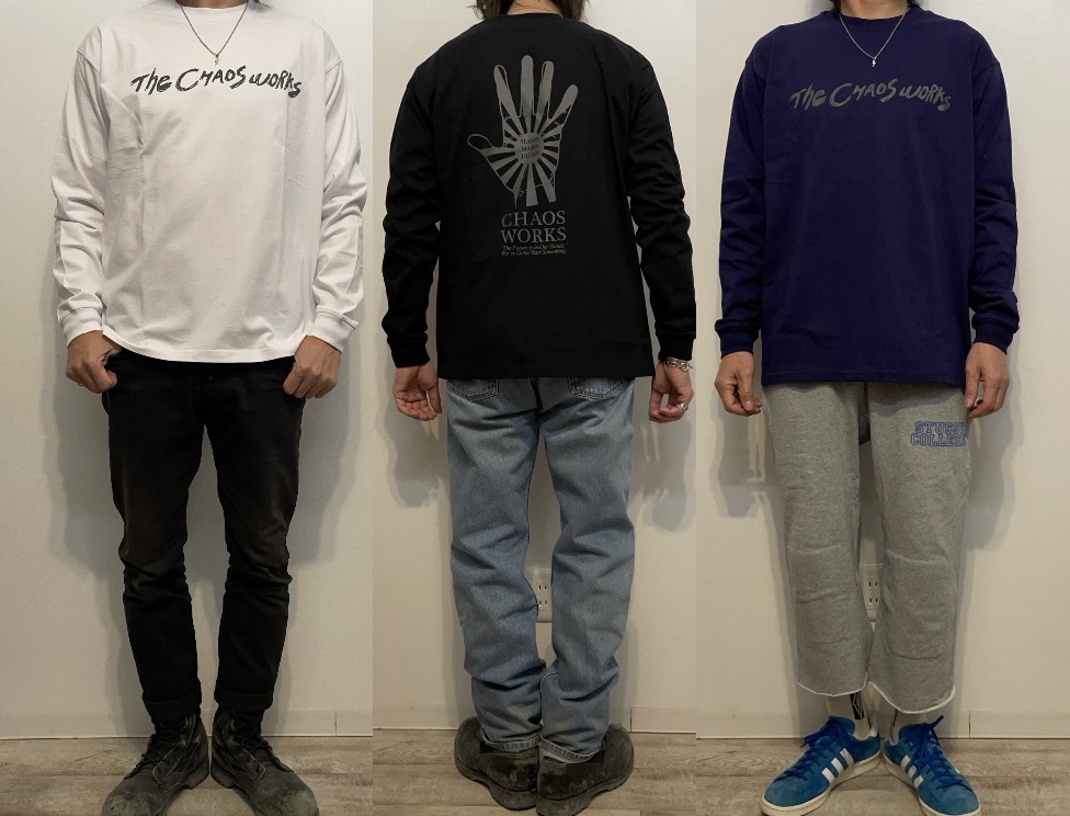 CHAOS WORKS L/S Tee CHAOS WORKS L/S Tee CHAOS WORKSよりニューアイテムの入荷です! 好評販売中のスウェットと同じデザインのロングスリーブTシャツが3カラーで登場です。 色はホワイト、ブラック、ネイビーの3色。 プリントカラーは3型ともグレーに... -